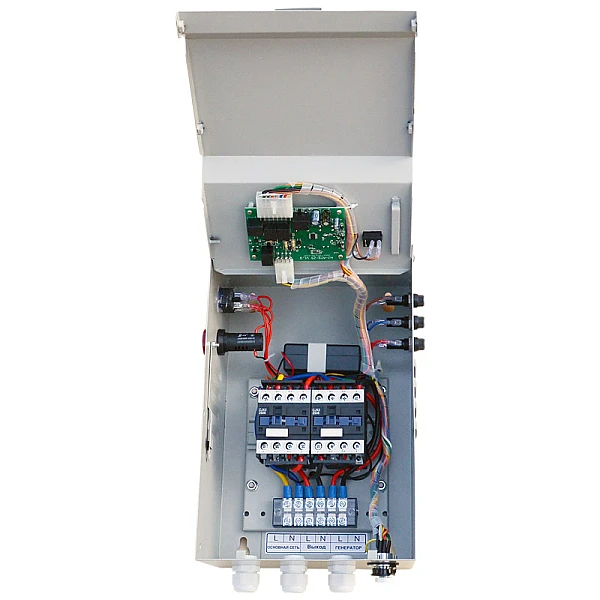 Предназначен для автоматического запуска бензинового генератора в момент пропадания основного источника электроэнергии и переключения нагрузки без вмешательства человека