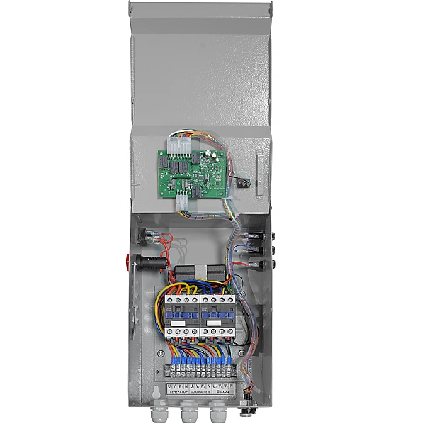 Предназначен для автоматического запуска бензинового генератора в момент пропадания основного источника электроэнергии и переключения нагрузки без вмешательства человека