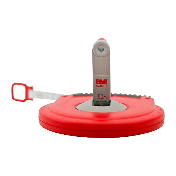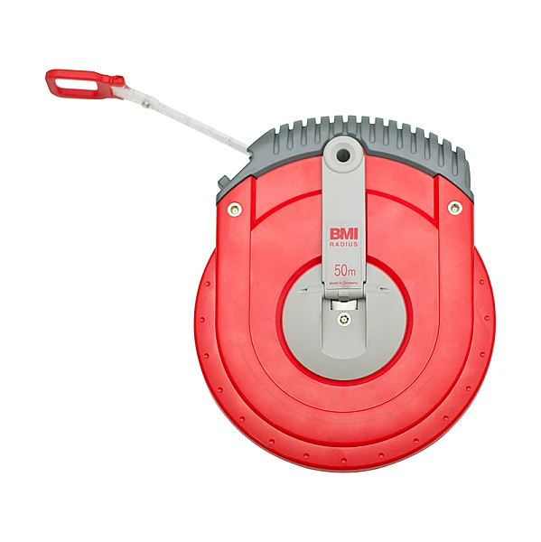 50-ти метровая рулетка в закрытом корпусе с крашенной стальной лентой, снабжена наконечником - крюк.