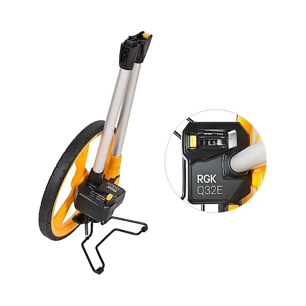 Колесо диаметром 320 мм позволяет выполнять измерения одинаково точно, как на ровных поверхностях, так и на бугристых, таких как газон или грунт. Дорожное колесо RGK Q32E с шиной из полиуретанового покрытия обеспечивает высокую точность результатов не только на асфальте или бетоне, но и на неровных поверхностях, таких как брусчатка и утрамбованный грунт.