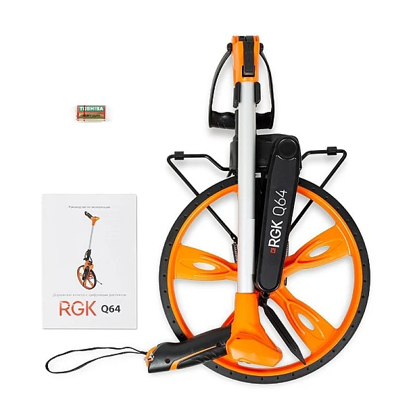 Складная конструкция рукоятки курвиметра RGK Q64 обеспечивает удобную транспортировку устройства в автомобиле или в общественном транспорте. Подножка позволяет удерживать колесо в вертикальном положении.