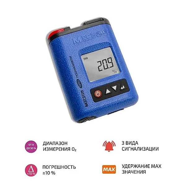 Газоанализатор МЕГЕОН 08101 – ручной измерительный прибор, который предназначен для анализа качественного или количественного состава кислорода в воздухе. Принцип работы устройства основан на съеме значений электрического тока, получаемого электрохимическим сенсором в результате химической реакции с участием молекул изучаемого газа. Диффузионный метод отбора проб. Три формата сигнализации: визуальная, звуковая и вибрационная.