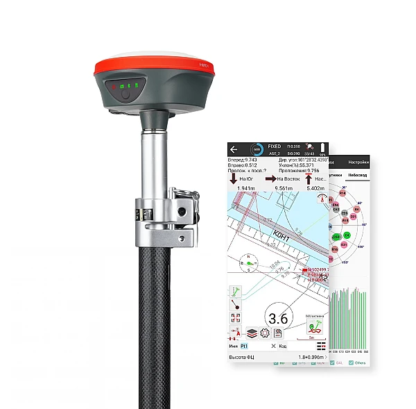 Приемник оснащен инерциальным модулем IMU до 120°, не зависящим от электромагнитных излучений. Вы можете выполнять съемку и разбивку с наклоном вблизи трансформаторных будок, линий электропередач и прочих излучателей электромагнитных волн, не опасаясь за корректность получаемых данных. Процесс выноса в натуру также стал заметно удобней: Вам больше не придется держать веху по круглому уровню в поисках проектной отметки – просто положите ее на плечо и ищите точку остриём вехи. Это позволит ускорить процесс разбивки в несколько раз.