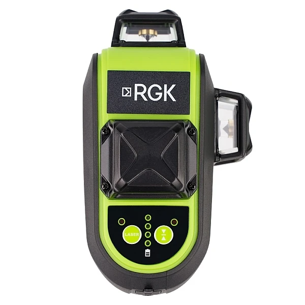 Лазерный уровень RGK PR-3G проецирует горизонтальную и 2 вертикальные линии. Лазерный луч зеленого цвета хорошо различим при ярком солнечном освещении и на поверхностях темного цвета.