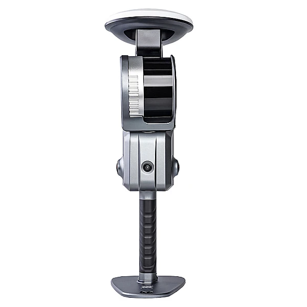 Для определения пространственного положения окружающих объектов, SLAM-сканер оборудован 16-канальным LiDAR-модулем с дальностью действия до 120 м. Он способен выполнять сканирование со скоростью 320 000 точек/с, вращаясь одновременно в двух плоскостях, обеспечивая сектор обзора 360° x 270°. Сбор визуальных данных для расцвечивания получаемого облака точек выполняют правая и левая 48-мегапиксельные панорамные камеры.