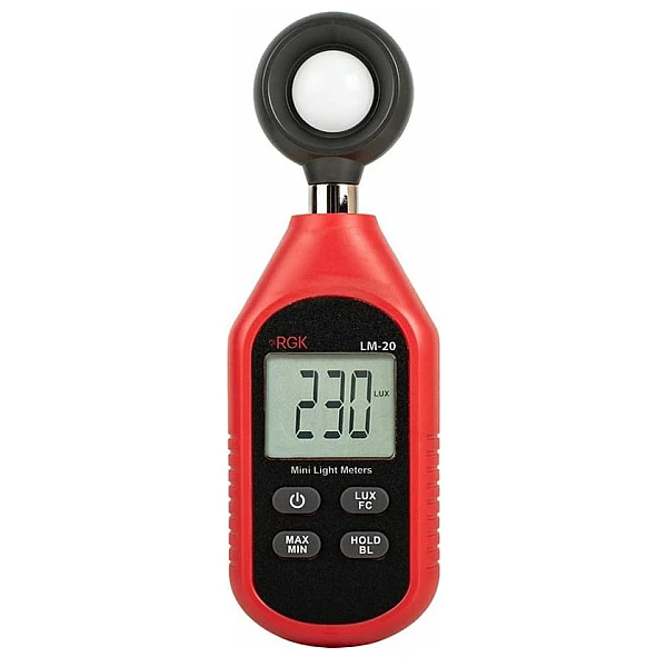 Люксметр RGK LM-20 - это прибор для измерения уровня освещенности в помещениях. Предел измерений составляет 199999 LUX, при точности от ±4%. Кремниевый фотоэлемент этой модели работает в видимом спектре и фиксирует свет, исходящий от искусственных и естественных источников. Основные сферы применения люксметра - проверка освещенности офисных, производственных, учебных и других помещений, тестирование расчетных показателей при монтаже осветительных систем и др.