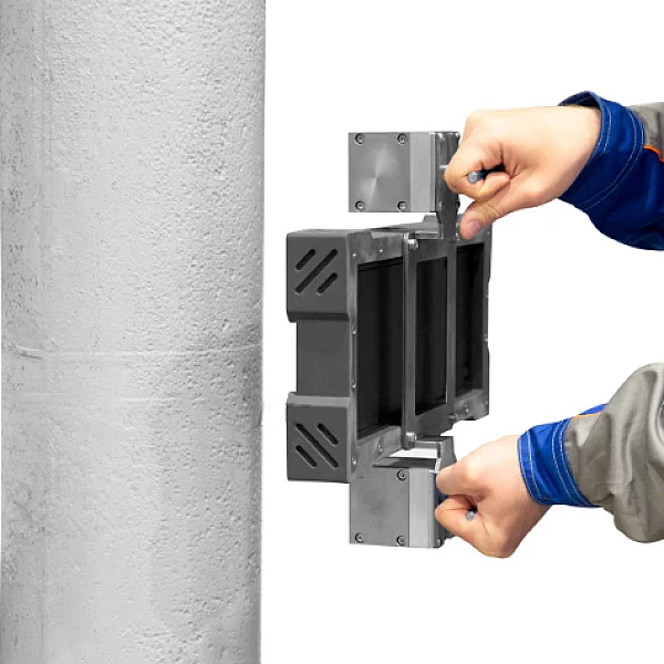 Магнитные держатели ЭКО-10МД используются для крепления цифрового плоскопанельного детектора Экоскан 10 в защитном кожухе ЭКО-10У на цилиндрических и плоских объектах контроля из магнитных металлов. Пространственное положение объектов может быть любым. Минимальный диаметр цилиндрических объектов контроля составляет 152 мм.