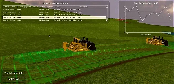 Уникальная особенность системы SiteLink3D - отслеживать в реальном времени формируемую поверхность, положение всех машин и их действия. Система предоставляет и постоянно обновляет данные о участке работы, материале, операторе и его активности. Система отслеживает объемы выработанного материала и предоставляет эти данные тем, кто нуждается в этой информации: начальнику строительства, геодезисту и оператору строительной техники.