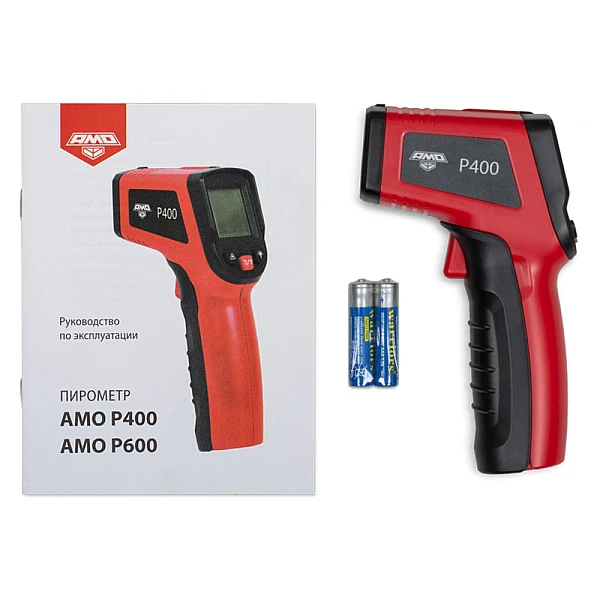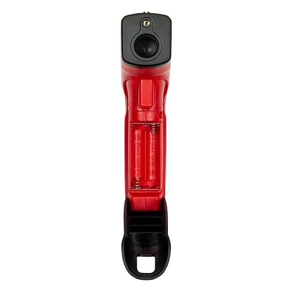 ИК-пирометр питается от двух 1.5 В батарей типа ААА, для смены которых достаточно поднять крышку, расположенную в рукоятке и заменить элементы соблюдая полярность. Уровень заряда удобно контролировать по индикатору на дисплее. После 13 сек. бездействия прибор автоматически отключается, что положительно сказывается на долговечности батарей.