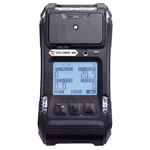 ТОП-СЕНС 380 (CH4, O2, CO, H2S) используется для определения содержания метана, кислорода, угарного газа (оксида углерода) и сероводорода в окружающей среде рабочих объектов, а также жилых помещений в пределах от 0 до 100% LEL (НКПР), от 0 до 25% об. доли, от 0 до 1000 ppm и от 0 до 100 ppm.