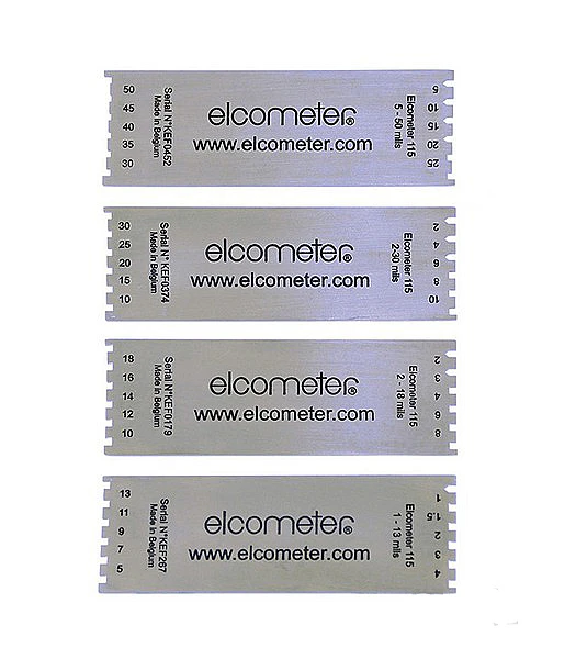 Поставляются 4 модели гребенок Elcometer 115 с диапазоном измерения до 1270 мкм.