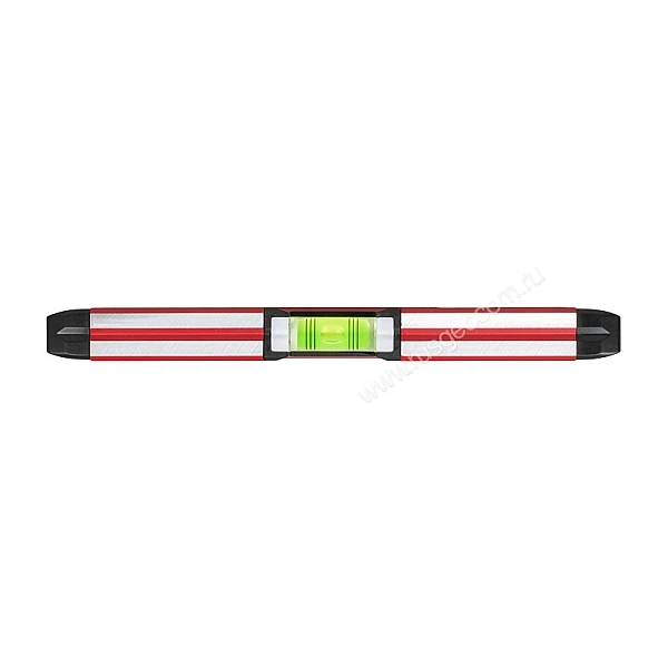 Длина инструмента в 250 мм позволяет легко использовать его одной рукой. Еще больше упрощает задачу наличие встроенного магнита для крепления на любой металлической поверхности. Имеется 3 ампулы: для горизонтального, вертикального положения и проверки по диагонали.