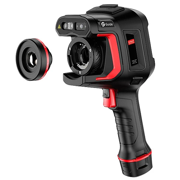 Тепловизор Guide H3+ (Hammer Series) оснащён детектором с разрешением 384 x 288 пикселей и чувствительностью 45 мК, частота кадров 30Гц. Диапазон измерения температуры -40°C +150°C, 0°C +650°C с автоматическим переключением режимов работы, 5 режимов фокусировки. Опционально от 500°C до 2000°C. Тепловизор оснащён 8 мегапиксельной камерой, есть функция наложения изображений, фото с камеры видимого спектра на термограмму, в результате получается более чёткое ик-изображение за счёт прорисовки краёв объектов. В комплекте с камерой два аккумулятора, зарядки хватает на 5 часов работы. Используется в промышленности