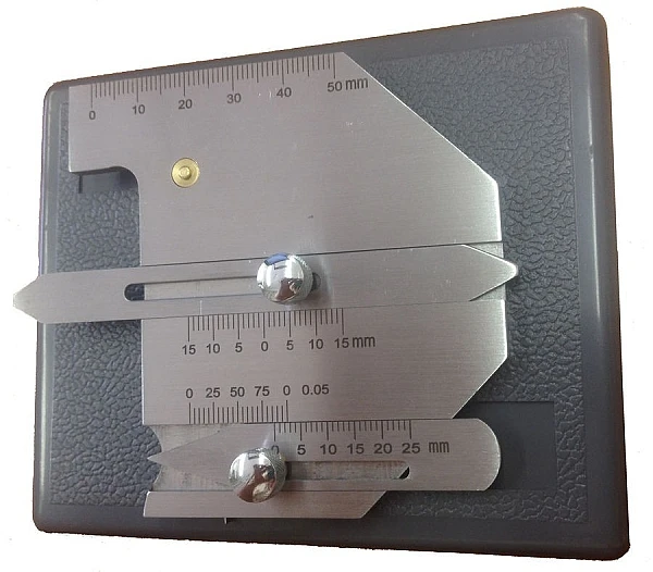 Cостоит из четырех компонентов: основной шкалы, измерителя высоты, измерителя глубины подреза и универсального измерителя. Применяется для измерения смещения, угла кромки, высоты, ширины зазора и глубины подреза сварного шва, и др. и подходит для контроля котлов, мостов, кораблей, сосудов давления и труб нефтяного сортамента.