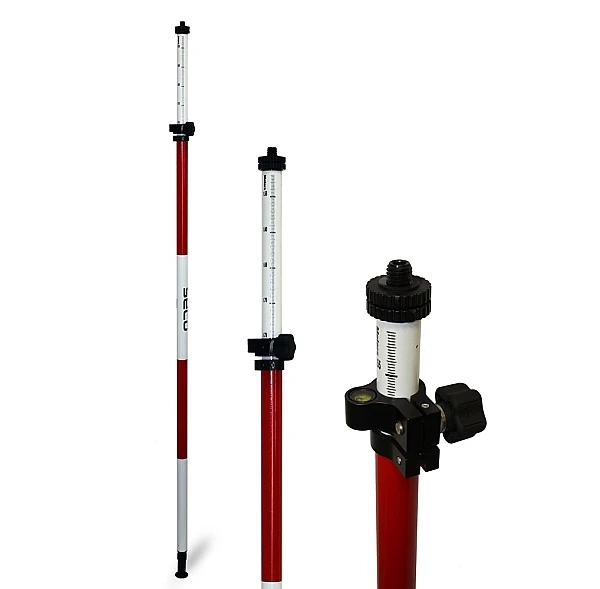 Сверхлёгкая (всего 0,88 кг) двухсекционная веха 5541-10 предназначена для установки отражательных систем или ГНСС приемников. Веха изготовлена из не проводящего ток фибергласса. Для установки в вертикальное положение веха снабжена 40’ уровнем, совмещенным с закрепительным механизмом. Закрепительный TLV механизм позволяет надежно фиксировать верхнюю секцию. Верхняя секция имеет установочную резьбу 5/8 x 11. Сантиметровая градуировка позволяет точно устанавливать веху на высоту до 2,62 метра. В нижней части вехи расположен наконечник, который при необходимости может быть закрыт специальной насадкой для установки на нетвердое основание.