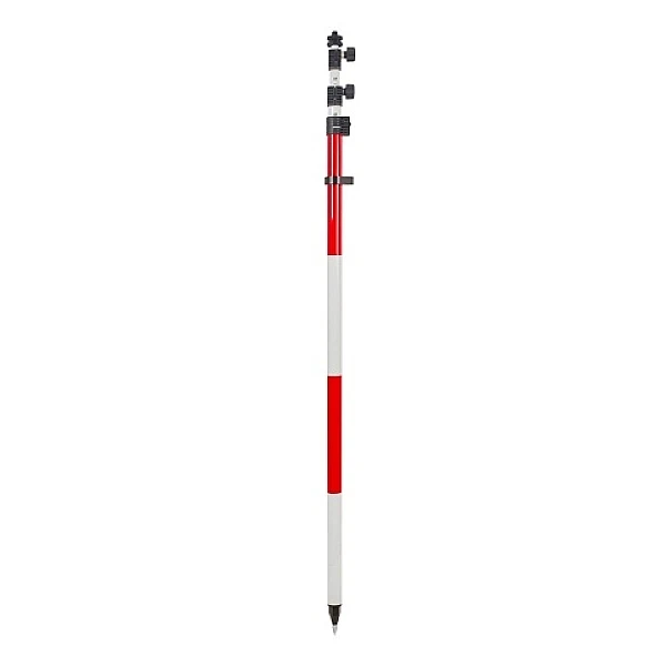 Практичная облегченная телескопическая веха RGK CLS 46-FG, весом 1,99 кг, изготовленная из лёгкого токонепроводящего стекловолокна с регулируемым пузырьковым уровнем, предназначена для установки отражательных систем или ГНСС приемников на высоте до 4,6 м. Оснащена надёжным закрепительным винтом и регулируемым креплением с резьбой 5/8 x 11, позволяющим надежно фиксировать секции. В стандартной комплектации предусмотрен транспортировочный чехол и насадка на наконечник, для работы на нетвердом основании.